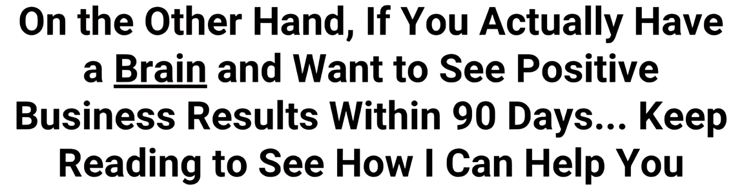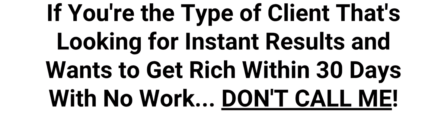 If you skipped to the bottom of this page just to read the PS, that's your problem. You think my service is a joke and don't really believe that your business can be super profitable. Fine. Keep doing what you're doing and don't fill out my form. I don't want you. I only deal with real players and you obviously don't believe you have the mental capacity to be a success in business. Go back to browsing on Youtube.