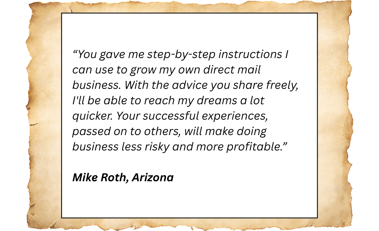 And in the process, they revealed the "recipe", the "template" for success in direct mail. And until you see for yourself, you’ll never believe how easy it can be for you to make good money in this business (as long as you follow the proven formula).