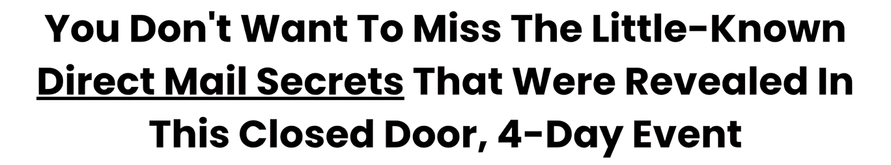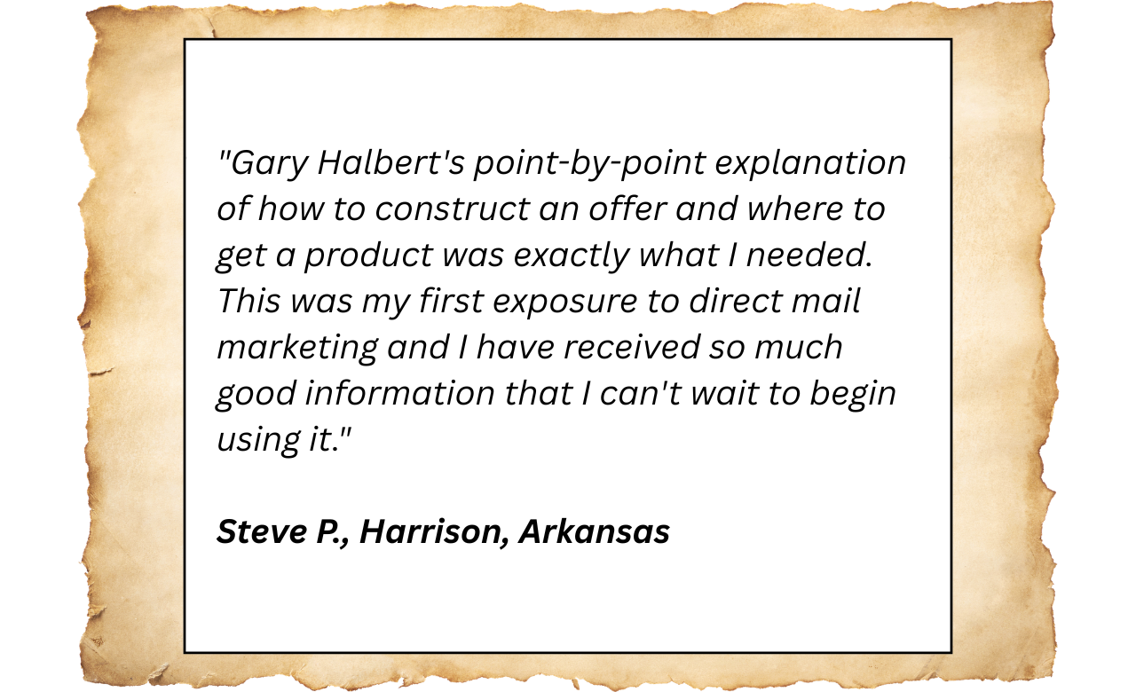 Anyway, if you are one of the ones who missed out on this life-changing experience, and want the "recipe for success" in direct mail, along with the private and confidential advice and direction from some of the best minds in the industry, you're in luck!