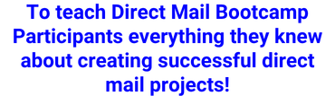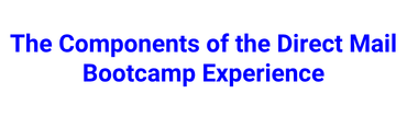 Still, an investment in one’s future can sometimes be priceless -- if only one can afford to make that investment. (It’s sad but true -- some people can’t afford to be successful). Anyway, if you can afford success, and recognize this as an opportunity to fulfill your dreams, this is your chance to participate in the complete Direct Mail Bootcamp Experience, including . . .