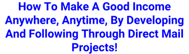 It’s true. No matter who you are or where you live in this country, you can learn how to make a good income doing nothing but coming up with and rolling out direct mail projects.